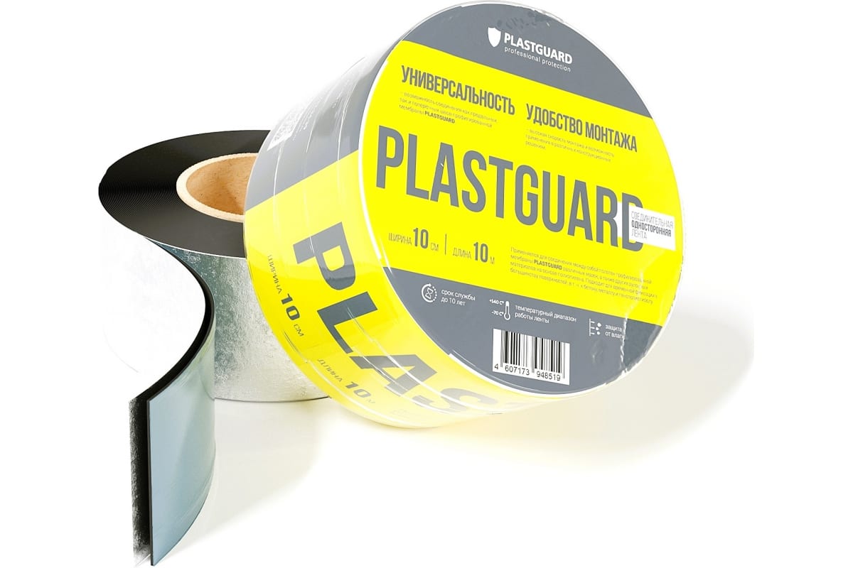 Лента PLASTGUARD 0,1×10 м для соединения мембран обеспечивает надежную защиту от проникновения влаги и пыли. Отличительная особенность этого продукта – наличие на поверхности ленты самоклеящейся антиадгезионной пленки из бутил-полимера.